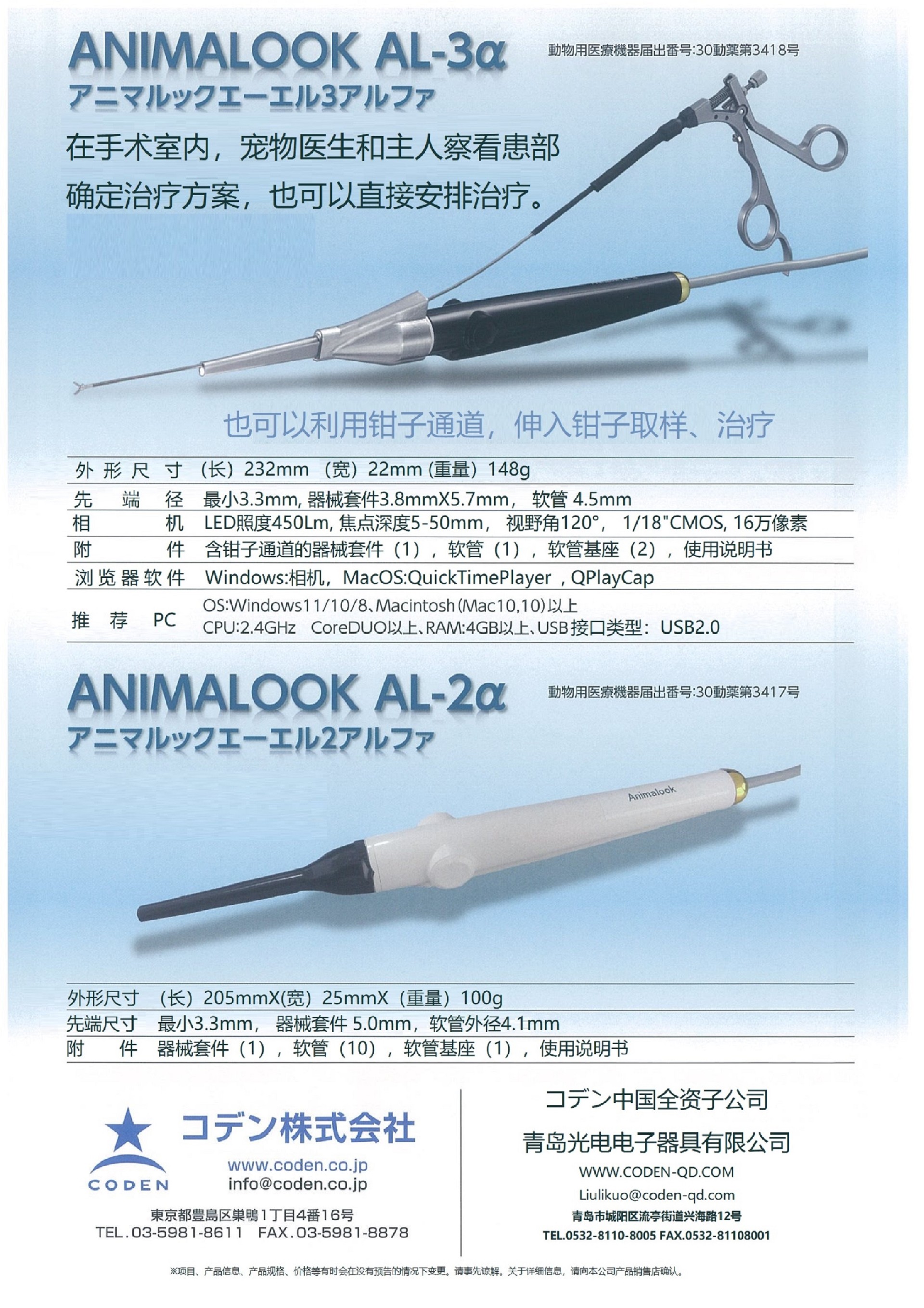 - 產(chǎn)品描述:AL-3 α 動(dòng)物耳道內(nèi)窺鏡 搭載16萬(wàn)像素醫(yī)用傳感器 USB2.0即插即用 可拍攝保存視頻和照片 獸醫(yī)師與寵物主共享圖像視頻 先端鏡頭外徑3.3mm, 免麻醉檢查操作 重復(fù)使用